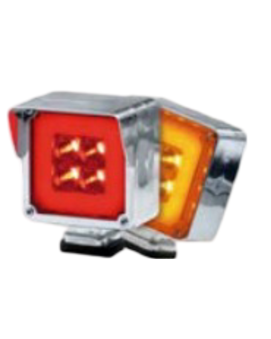• Dimensiones: 9 x 7,6 x 4 cm • Soporte en ABS Cromado • Lente en Policarbonato • Luz fija ó intermitente • Lámpara resinada CARAS INTERCAMBIABLES